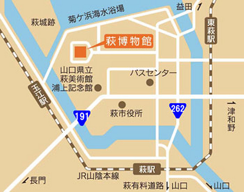 萩バスセンターより「まぁーるバス」西回り5分「萩博物館前」下車